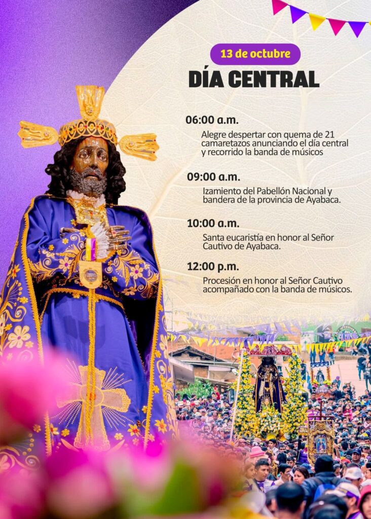 Con esta programación, Ayabaca reafirma su identidad como destino de fe, tradición y cultura, convirtiéndose en punto de encuentro para los devotos del Señor Cautivo, cuyo fervor traspasa fronteras.