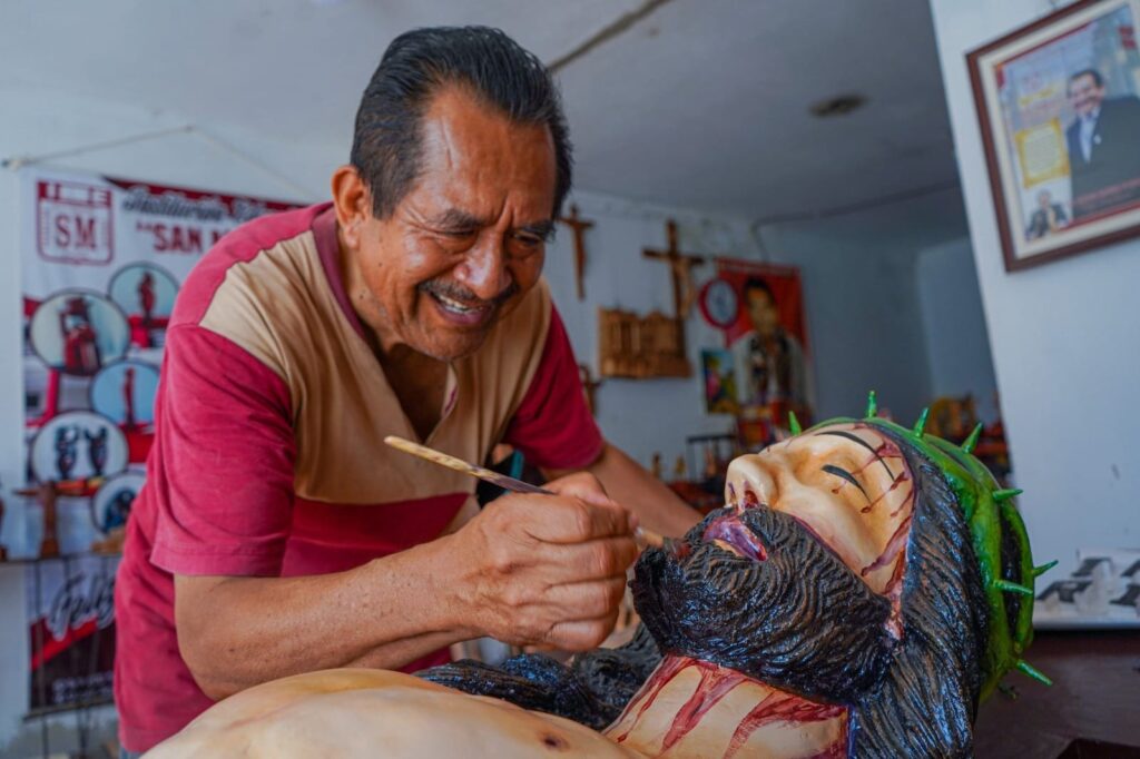 Además, el maestro destacó que una de las etapas más importantes del trabajo fue el pintado de la madera, que realizó con técnicas coloniales que rescatan los matices de aquella tradición artística. “Hemos pedido a Dios que nos ilumine y ayude a realizar este trabajo, pues como cataquense amo a Cristo y reafirmo mi fe en Él”, expresó con firmeza.