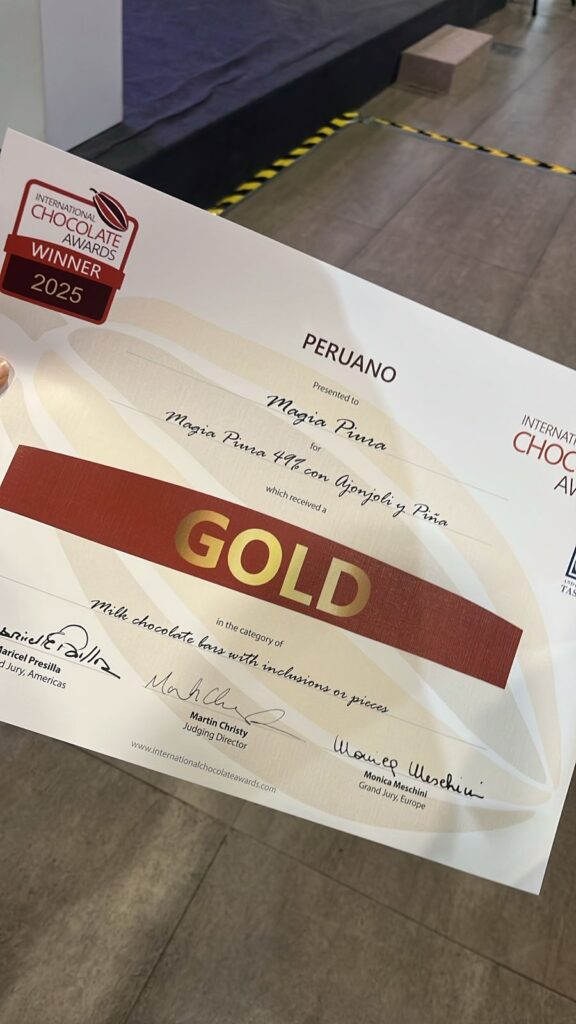 Magia Piura, la marca artesanal que nació con el sueño de convertir el cacao piurano en arte, acaba de conquistar un nuevo peldaño en la élite del chocolate mundial. En la edición 2025 de los prestigiosos International Chocolate Awards, cuya ceremonia se celebró durante el Salón del Cacao y Chocolate en Lima, esta firma del norte peruano obtuvo seis galardones que confirman su excelencia y su compromiso con el sabor, la calidad y la identidad regional.