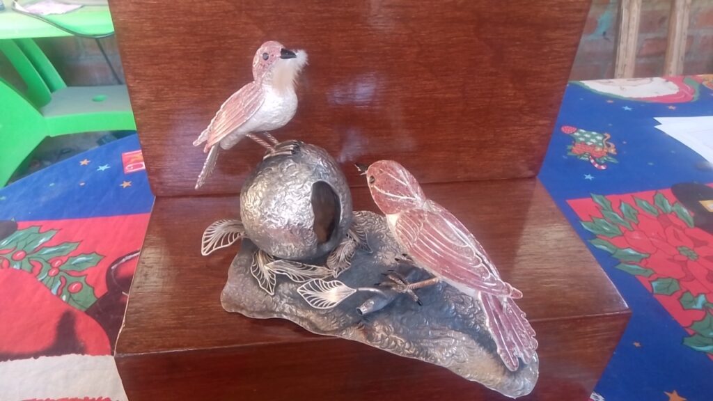 La obra que le valió el reconocimiento fue una escultura de 220 gramos de plata, con 10 centímetros de ancho, 15 de largo y 12 de alto, inspirada en el chilalo, ave símbolo de libertad y admirada por su singular habilidad para construir nidos de barro resistentes a la lluvia. La pieza, titulada “Excelente arquitecto, Chilalo, reloj de los piuranos”, recoge recuerdos de la infancia del artesano, marcados por el canto, los colores y la resiliencia de esta ave piurana.